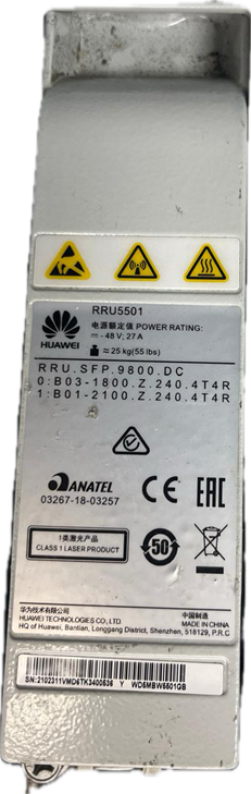 Наружный приемопередающий блок RRU5501, многостандартный GSM/UMTS/LTE, 1800/2100 МГц, 8 несущих UMTS (без MIMO), 2 несущих LTE 4T4R, 4 x 60 Вт, 48 В постоянного тока, для Huawei DBS3900|HUAWEI|RRU5501|02311VMD||