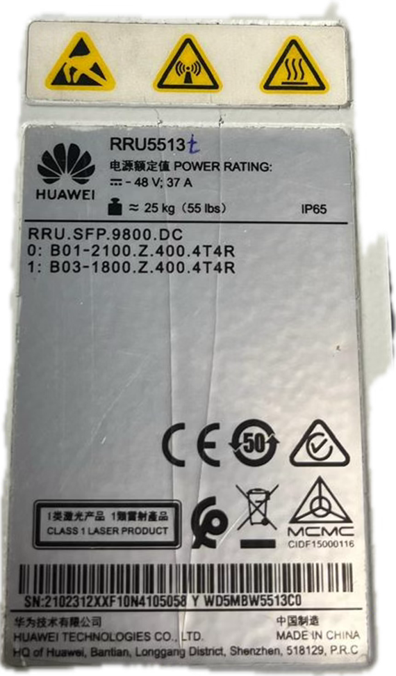 Наружный приемопередающий блок RRU5513 многостандартный GSM/UMTS/LTE, 1800/2100 МГц, 8 несущих GSM, 7 несущих UMTS, 4 несущих LTE, 2 x 4T4R, 4 x 100 Вт, 48 В постоянного тока, для Huawei BTS5900|HUAWEI|WD5MZAASJAAD|02312MKM||