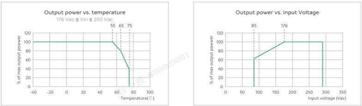 Примечание: -10℃~55℃, температура нормальной работы; 55℃~65℃, выходная мощность линейно снижается до 80%; При 65℃~75℃, выходная мощность линейно снижается до 40%,; При -40℃, питание может включаться в обычном режиме после включения питания на входе. Форма сигнала выходного напряжения не требуется. |